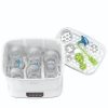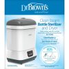 Steriliser og tørk opptil seks tåteflasker, brystpumpedeler, smokker og bitringer med Dr. Brown’s Steam sterilisator med tørkefunksjon. Steriliser kun, kun tørk eller kombinert steriliser og tørk, pluss oppbevaring – 4 funksjoner i én enhet! Sterilisatoren steriliserer 99,9 % av bakterier, sopp og gjær som forårsaker trost. Innholdet forblir sterilisert i opptil 24 timer hvis lokket er uåpnet etter fullført syklus. Dette betyr at du kan lagre flasker og komponenter i sterilisatoren uten forurensning. De inkluderte HEPA-filtrene fanger opp opptil 95 % av luftbårne partikler, og sikrer renset luft og overlegen tørking.