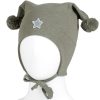 Myk vårlue med to hengende dusker. Luen dekker ørene godt, har windstopper og knyting under haken.