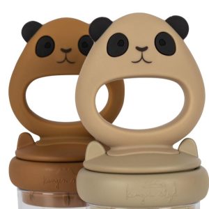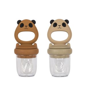 2pk silicone fruit feeding pacifier panda – caramel/warm clay
