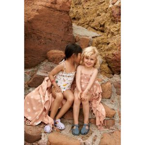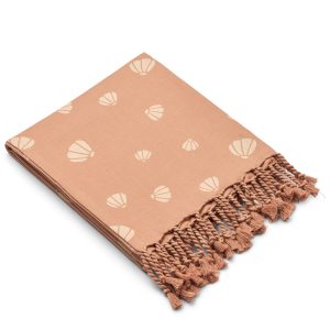 Alba yarn dyed hooded baby towel – peach/sea shell