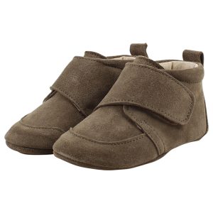EN FANT skinntøfler m/borrelås – brown