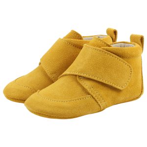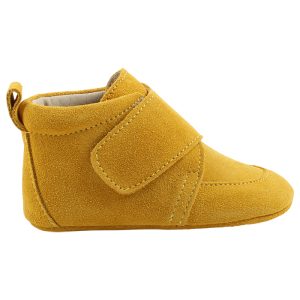 EN FANT skinntøfler velcro plain – yellow suede
