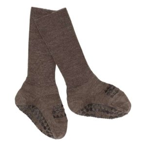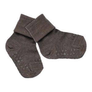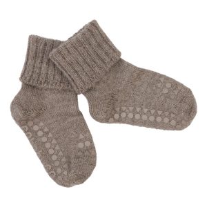 Non-slip socks merino wool – brown melange
