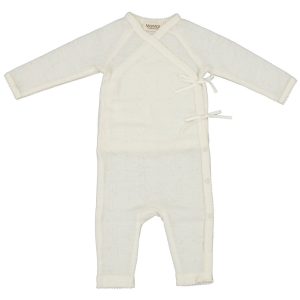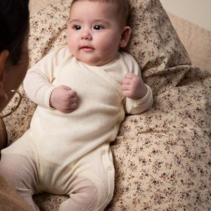 Rula newborn onesie wool pointelle – natural