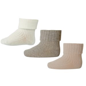 Wool rib baby socks 3pk – light brown melange
