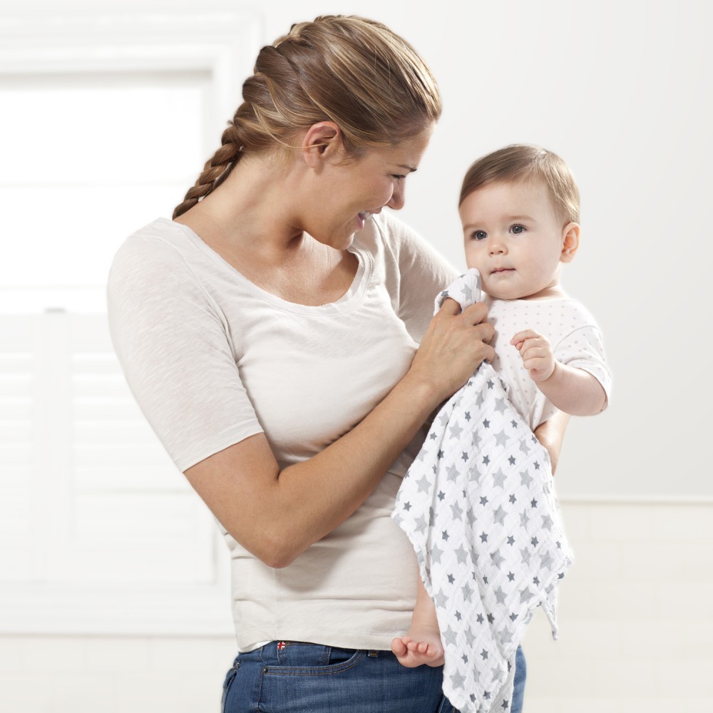 - Allsidig: fungerer bl.a. som gulpeklut, koseklut, vaskeklut osv.