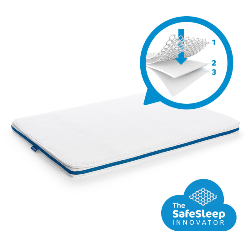 Den avtagbare madrassbeskyttelsen har en 3D-struktur (likt bikube) som består av 95 prosent luft og 5 prosent materiale. Takket være denne struktur kan ditt barn puste uhindret selv om det ligger med ansiktet ned.