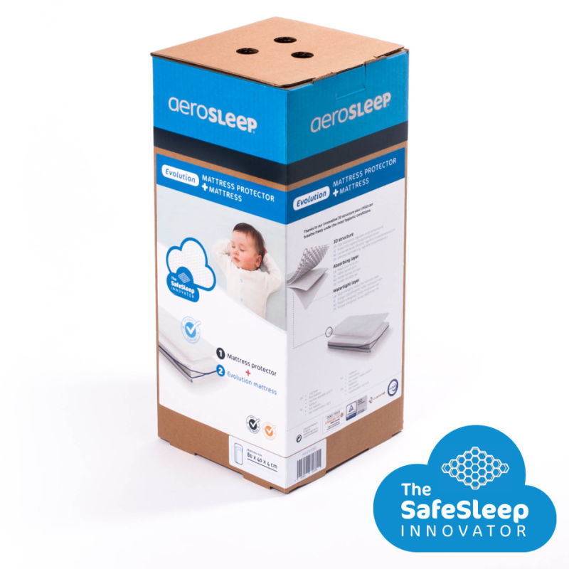 Madrasspakken Trygg Søvn Evolution er en enda mer luksuriøs søvnpakke fra Aerosleep som består av en madrass i kaldskum og en unik madrassbeskyttelse med 3D-struktur som tillater luften å sirkulere slik at barnet kan puste fritt og har en optimal kroppstemperatur.