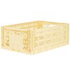 Sammenleggbar oppbevaringskasse i slitesterk, resirkulerbar PP-plast. Kassene var opprinnelig designet for restauranter og er næringsmiddelgodkjent. Bakterier kan ikke leve på PP-plast, i tillegg er det vedlikeholdsfritt, 100% resirkulerbart og kan brukes i mange, mange år.
