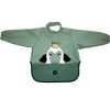 Superpraktisk langermet smekke som holder enda mer søl unna! Smekken som har hals slik at alt søl holdes på utsiden av smekken! Kan brukes fra den første matbit introduseres og frem til barnet spiser selv uten å søle. Materialet på halsen er lik som resten av smekka, noe som gjør det enkelt å skylle av den, og den tørker på null komma niks. Med de lange armene kan barnet fullt ut få utfolde seg ved matbordet, og strikket rundt håndleddet stopper maten fra å lure seg inn til armen.