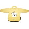 Superpraktisk langermet smekke som holder enda mer søl unna! Smekken som har hals slik at alt søl holdes på utsiden av smekken! Kan brukes fra den første matbit introduseres og frem til barnet spiser selv uten å søle. Materialet på halsen er lik som resten av smekka, noe som gjør det enkelt å skylle av den, og den tørker på null komma niks. Med de lange armene kan barnet fullt ut få utfolde seg ved matbordet, og strikket rundt håndleddet stopper maten fra å lure seg inn til armen.