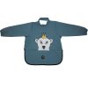 Superpraktisk langermet smekke som holder enda mer søl unna! Smekken som har hals slik at alt søl holdes på utsiden av smekken! Kan brukes fra den første matbit introduseres og frem til barnet spiser selv uten å søle. Materialet på halsen er lik som resten av smekka, noe som gjør det enkelt å skylle av den, og den tørker på null komma niks. Med de lange armene kan barnet fullt ut få utfolde seg ved matbordet, og strikket rundt håndleddet stopper maten fra å lure seg inn til armen.