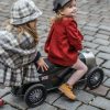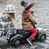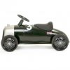 Nostalgisk gåbil i en klassisk mørkegrønne fargen. Lakkert metall med sølv front. Store gummihjul med fine detaljer som gjør at den passer like godt inne som ute. Svingbart ratt med horn. Både ratt og sete er i skinnimitasjon for en litt mer luksuriøs følelse. En ekte Bentley til mini 🙂