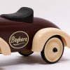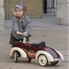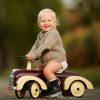 Superkul nostalgisk gåbil i lakkert metall. Gummidekk gjør at den passer like godt inne som ute, karosseri og styresystem er i metall. Svingbart ratt med horn. Denne bilen dytter du igang med føttene. Den perfekte gaven til jul, dåp/navnedag, bursdag osv.! Kommer umontert.