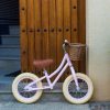 Sykkelen har en barnevennlig stålramme med rosa finish, med 12″ hjul slik at barnet kommer seg lett frem på trøblete veier og stier. Håndtaket og setet er justerbart, noe som gjør det mulig for barnet å vokse med sykkelen. Balansesykkelen har skinndetaljer på setet, et materiale som egner seg godt for alle typer værforhold og er lett å tørke av. Kurven foran på sykkelen er en «all-time» favoritt som lar barna ha med seg små ting og tang som de trenger til hverdagens eventyr.