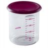 Boksen har målestreker til 240 ml og rommer 300 ml, tåler både bruk i mikrobølgeovn og fryser.