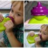 - morsom, myk, silikonflaske for hjemmelaget fruktmos til babyen.