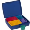 Dette er matboksen for de som ønsker en mer spennende lunch enn 2 brødskiver i en boks. De 4 små boksene (to med lokk) kan fylles med salat, frukt/grønt, middagsrester uten at alt blir klissete og blandet. Plass til bestikk, egen boks til dressing/dip. Trenger ikke bruke alle boksene samtidig. Supersmart og fint design, størrelsen passer fint i alle sekker.