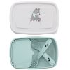 Dette er matboksen for de som ønsker en mer spennende lunch enn 2 brødskiver i en boks. De 4 små boksene (to med lokk) kan fylles med salat, frukt/grønt, middagsrester uten at alt blir klissete og blandet. Plass til bestikk, egen boks til dressing/dip. Trenger ikke bruke alle boksene samtidig. Supersmart og fint design, størrelsen passer fint i alle sekker.