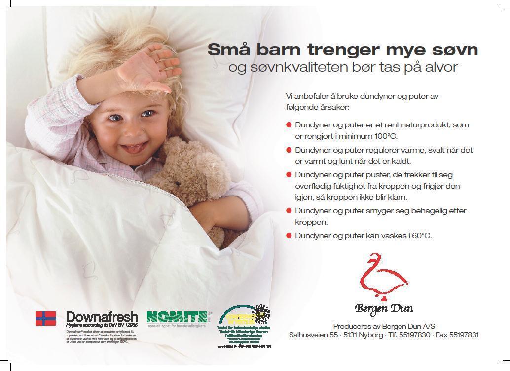 Dundyner og dunputer kan vaskes på 60 grader så barnet ditt alltid får en ren og deilig nattesøvn. Husk å tørke produktet i tørketrommel til det er helt tørt. Bruk enzymfritt dunvaskemiddel/ullvaskemiddel. Vi anbefaler å bruke dundyner og dunputer av følgende årsaker: