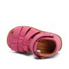 Carly er en klassisk begynnersandal, til barn der fortsatt kan være litt usikre på bena. Sandalen er designet med en lukket tå som gir tærne god beskyttelse når mini krabber, eller løper og snubler. Fast og stabil hælkappe som gir barnet den rette støtte og stabilitet rundt ankelen. Carly er håndlaget i Portugal av naturlig og pustende skinn med en kromfri vegetabilsk garvet innside i skinn, som føles silkemyk for små føtter. Med en justerbar borrelåsrem, er sandalen enkel å justere også for de minste barna. Sandalen har en lett, fleksibel og sklisikker gummisåle, som sørger for høy komfort gjennom hele dagen. ECO CARE Eco vennlig vegetabilsk garvet skinn omslutter barnets føtter – 100% fri for kjemikalier.