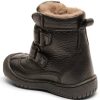 Vannavvisende vinterstøvel i skinn med ullfor og en fleksibel såle. De pustende, temperaturregulerende materialene holder føttene tørre og varme vinteren gjennom. Støvlene har et mellomlangt skaft og lukkes med borrelås. Skinnet er vegetabilsk garvet, fritt for kjemikalier, krom og metaller.