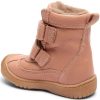 Vannavvisende vinterstøvel i skinn med ullfor og en fleksibel såle. De pustende, temperaturregulerende materialene holder føttene tørre og varme vinteren gjennom. Støvlene har et mellomlangt skaft og lukkes med borrelås. Skinnet er vegetabilsk garvet, fritt for kjemikalier, krom og metaller.