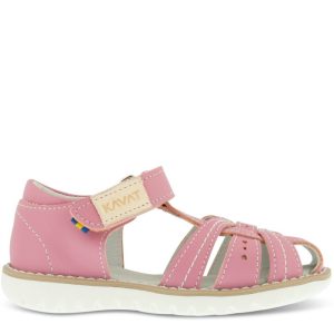 Sandaler med lukket tå, som gir tærne god beskyttelse når mini krabber, eller løper og snubler. Helen er lukket og har en høy og stabil helkappe som gir stabilitet og støtte. Sandalen er produsert i 100% naturlig og pustende skinn og har en myk og fleksibel såle. ECO CARE Eco vennlig vegetabilsk garvet skinn omslutter barnets føtter – 100% fri for kjemikalier. Produsert i Europa