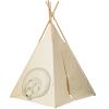 Kjempefint tipi-telt for innelek, og utelek på tørre dager. Teltet har en søt sovende kanin på den ene siden.
