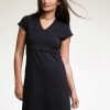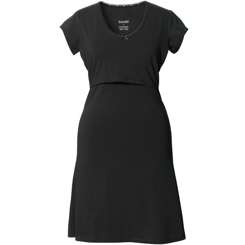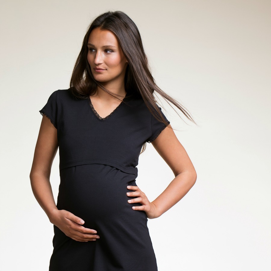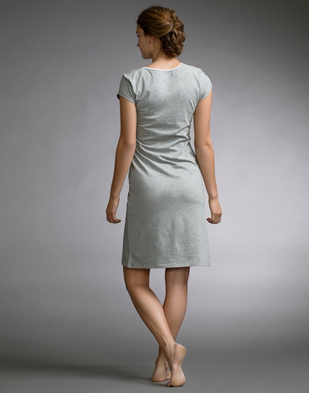 Amme-nattkjole i økologisk bomull. Dobbeltfunksjon; kan brukes under graviditeten og ved amming. Nattkjolen har V-hals og kort erm. Fin passform som passer fint for både gravide og ammende.