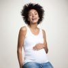 Like fin under en tunika som innenfor en strikkejakke. Eller alene i den varmere årstid. Det perfekte basic-plagg i mamma-garderoben! Ribbet kanting og avrundet kant nede. Dobbeltfunksjon; passer også til babybump! Diskret ammeåpning. Myk stretch-trikot.