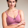 Myk og sømløs amme-BH for deg som foretrekker naturlige fibre. Sitter komfortabelt både under graviditet og ved amming. Den er smart og fleksibel, i et flatterende og feminint design. Utringningen har en liten blonde, justerbare stropper og nikkelfrie detaljer. Cupen åpnes enkelt med en hånd. På siden av bysten samt nede under bysten finnes et forsterket støtteparti som gir ekstra støtte. BH’en tilpasser seg fleksibelt etter bryststørrelsen, som varierer i ammeperioden. Størrelsen kan også justeres med en ekstra forlenger med hekter som medfølger.