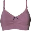 Myk og sømløs amme-BH for deg som foretrekker naturlige fibre. Sitter komfortabelt både under graviditet og ved amming. Den er smart og fleksibel, i et flatterende og feminint design. Utringningen har en liten blonde, justerbare stropper og nikkelfrie detaljer. Cupen åpnes enkelt med en hånd. På siden av bysten samt nede under bysten finnes et forsterket støtteparti som gir ekstra støtte. BH’en tilpasser seg fleksibelt etter bryststørrelsen, som varierer i ammeperioden. Størrelsen kan også justeres med en ekstra forlenger med hekter som medfølger.