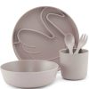 - Gaveesken inneholder fire deler; en tallerken, en skål, en kopp og ett bestikk.