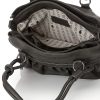 Med fine detaljer som rynkeeffekten på forlommen og de doble hankene med en knute, gjør vesken seg like godt både som stelle- og håndveske.