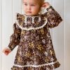 The Day Flounce Dress is cut in our soft and comfortable BCI certified cotton quality. It has a down to the knee length, a loose and comfortable fit, and long sleeves. The dress has a round neckline and a bib detail around the neckline made of lace. It has pretty lace trimmings on the cuffs and hemline.