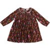 The Thin Cord Ruffle Dress is cut in our soft and comfortable BCI certified cotton quality. It has a down to the knee length, a loose and comfortable fit, and long sleeves. The dress has a round neckline and a bib detail around the neckline made of lace. It has pretty lace trimmings on the cuffs and hemline.