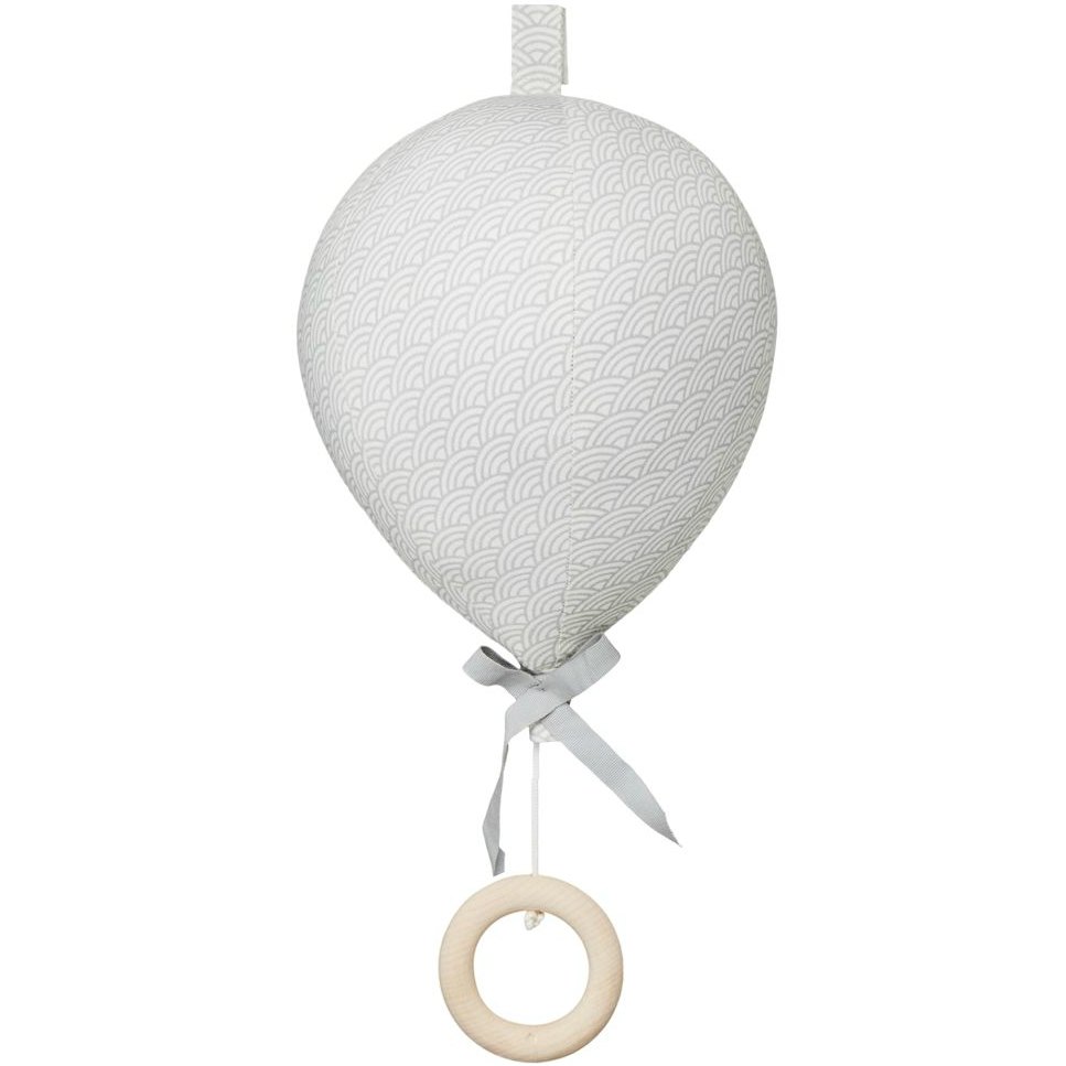 Nydelig håndlaget uro til barneværelset. Uroen er formet som en ballong med en søt sløyfe i bunnen. Mobilen spiller musikk ved å enkelt dra i snoren med en trering. «Summertime» av George Gershwin spilles.