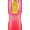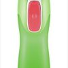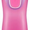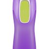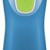 Knappen på baksiden presses inn når man drikker. Dette er noe barn mestrer fra 3-årsalderen. Flaskene kan vaskes i oppvaskmaskin og er enkle å rengjøre. Flasken rommer 260 ml.