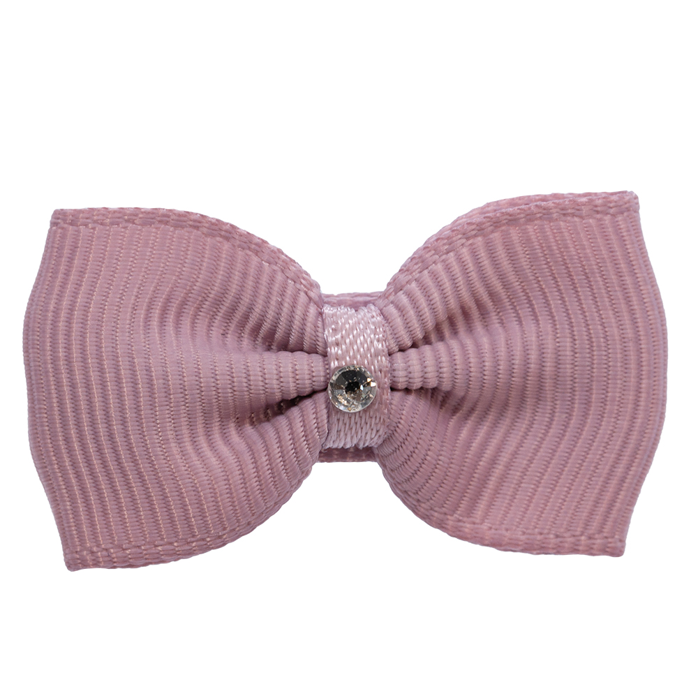 Nydelig hårspenne pyntet med sløyfe i metallic bånd med en svarowski krystall i senter. Hårspennen har antiskli og måler 3,2cm. Lengden på sløyfen er ca 3,5cm.