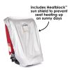 • inkluderer reflekterende varmeskjold på innsiden av frontlommen med glidelås for å holde bilsetet og spennene kjølige når de ikke er i bruk