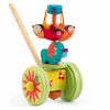 Søt treleke fra Djeco, en liten hund på tur med en flokk fugler som svever i ring når barnet går med pinnen.