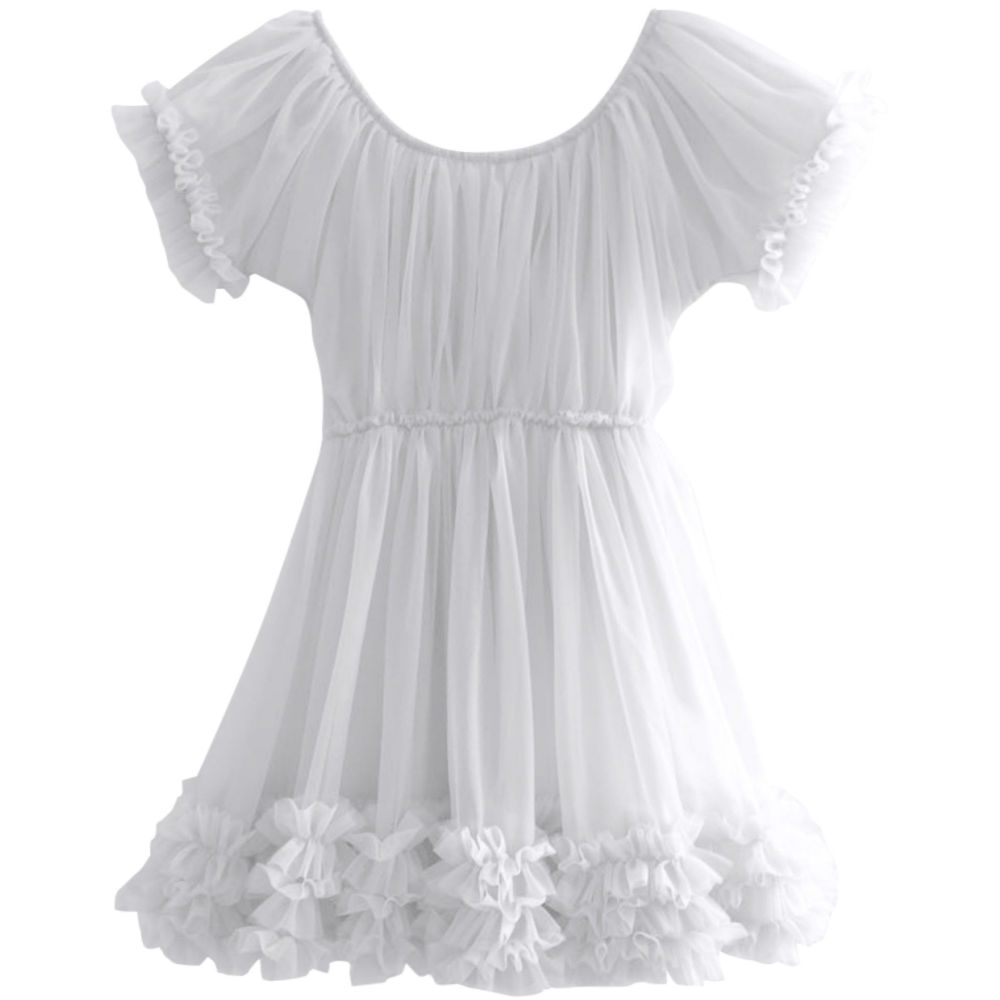 Dolly by Le Petit Tom ® RUFFLED CHIFFON DANCE DRESS. Light chiffon dance dress with ruffles an nylon underlay. Wear casual and light in warm weather and chic with stockings. When it’s cold just pair with a classic cardigan or blouse. If there is a party… well you always wear your DOLLY of course!