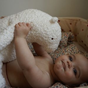 Praktiske og søte bibs med lomme, og Croco the crocodile og Raffi the giraffe holder mini tørr og ren under måltidet . Gjemt i lommen ligger et eple eller en gulrot som er maten til de søte dyrene. Perfekt størrelse for de minste når de starter å spise selv. Velcro (borrelås) gjør den svært enkel å ta av og på.