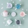 Raffi og Elphee venter på at barnet skal drikke opp alt i koppen! Håndtaket passer bra til små hender, og passer perfekt i Done By Deer sin tallerken med fire rom.