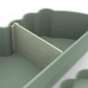 Den solide og slitesterke Croco-matboksen er morsom og praktisk å ta med når maten serveres hjemmefra. En smart, avtagbar skillevegg kan skille maten inni den. Det er lett for små hender å åpne og lukke den praktiske krokodilleformede matboksen og lokket kan brukes som tallerken. Den søte matboksen tåler oppvaskmaskin. La Croco ta vare på maten til den lille, så drar de til barnehagen, førskolen eller på et morsomt eventyr. Den kule grønnfargede Croco-matboksen er designet og laget i Danmark.