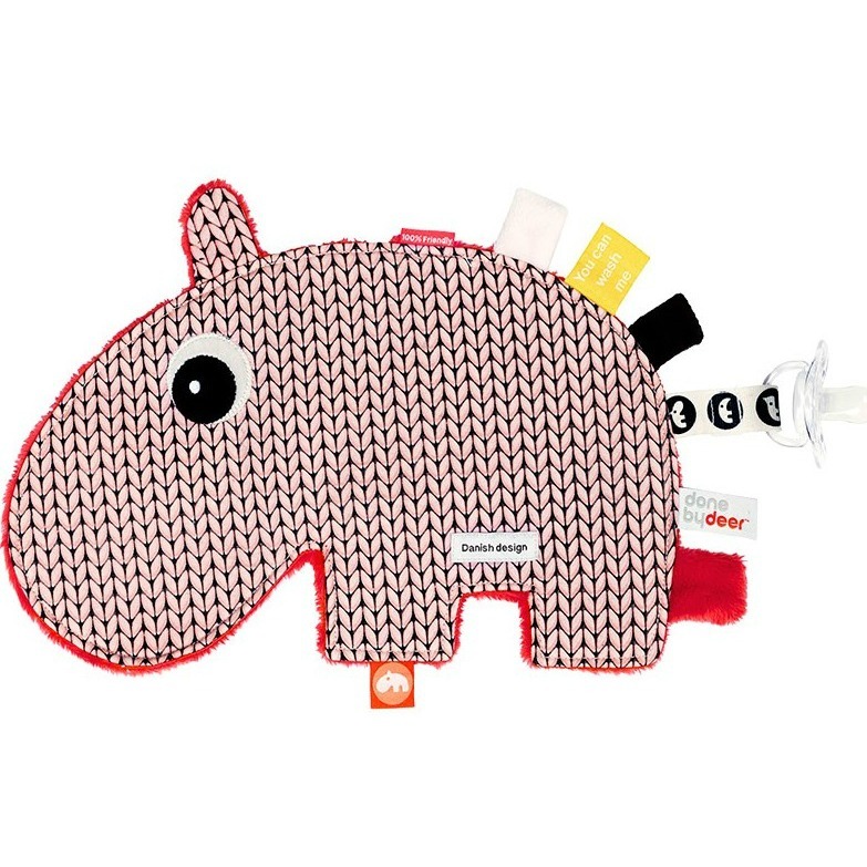Supermyk og deilig koseklut fra Done by Deer. Smokken kan også festes bak på Ozzo’s hale slik at den ikke kommer seg bort.