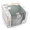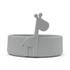 Praktisk skål i silikon med giraffen Raffi tittende opp fra kanten., Silikon har en naturlig antiskli egenskap, og skålen holder seg pent på plass oppå bordet. Buet innside gjør det enklere å samle maten oppi skjeen.