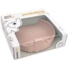 Praktisk silikontallerken med elefanten Elphee tittende opp fra kanten., Silikon har en naturlig antiskli egenskap, og tallerkenen holder seg pent på plass oppå bordet. Buet innside gjør det enklere å samle maten oppi skjeen.