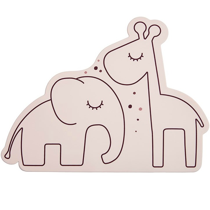 Gjør spising morsommere med Elphee og Raffi! Spiseunderlaget er laget av silikon som tåler varme og er anti-skli. Beskytter bordet mot både hakk og søl. Kan tørkes av med klut eller vaskes i oppvaskmaskinen.